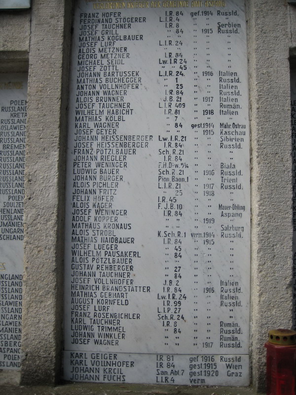Kriegerdenkmal in 2870 Aspang / Niederösterreich